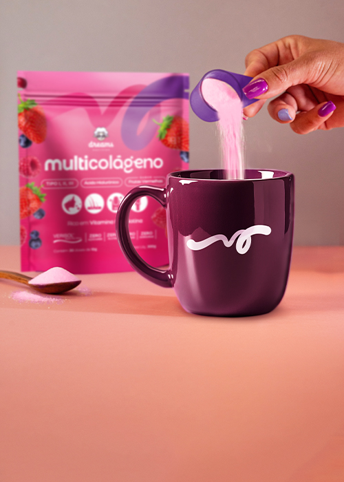 Com a perda natural de colágeno, surge a necessidade de suplementação correta e frequente. Foi assim que nasceu o nosso Multicolágeno! Nossa fórmula exclusiva combina colágeno tipos I, II e III, Verisol hidrolisado e ácido hialurônico.